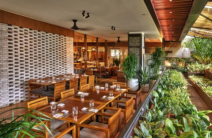 The semi-outdoor dining terrace of celebrity chef restaurant Osteria Mozza