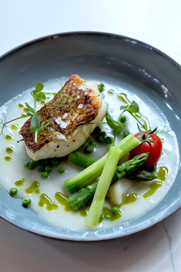 For mains, the black cod is a winner – perfectly seared and served with asparagus and green peas