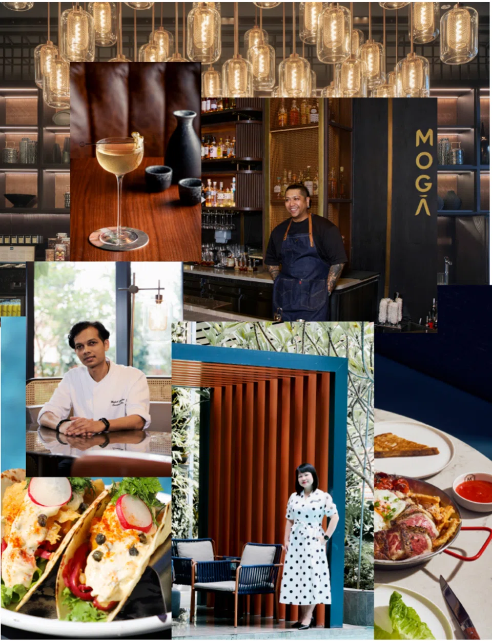 Clockwise from top left: Staying at Pullman Hill Street? Swing by Moga for the Dirty Sake-tini. Head bar manager Gavin Teverasan shakes up Japanese-inspired classics with a twist. Liza Tan, hotel manager. Executive chef Mahesh Gawhane oversees the hotel’s restaurants