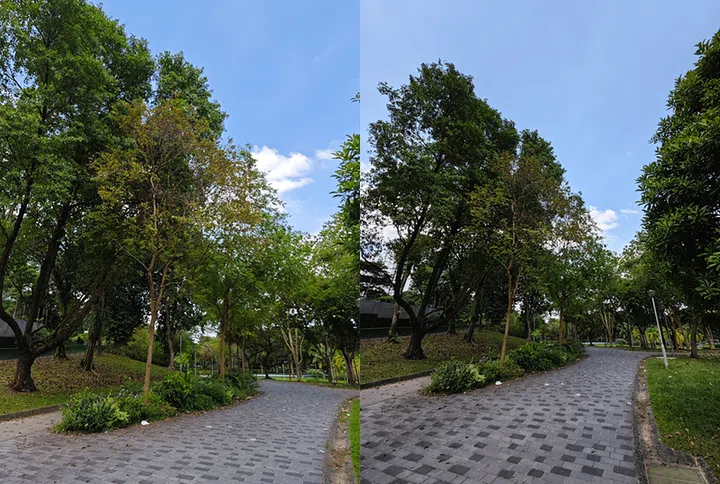 Photo: Shooting on Leica Vibrant mode (left) and Leica Authentic mode with 0.6x wide-angle lens (right)