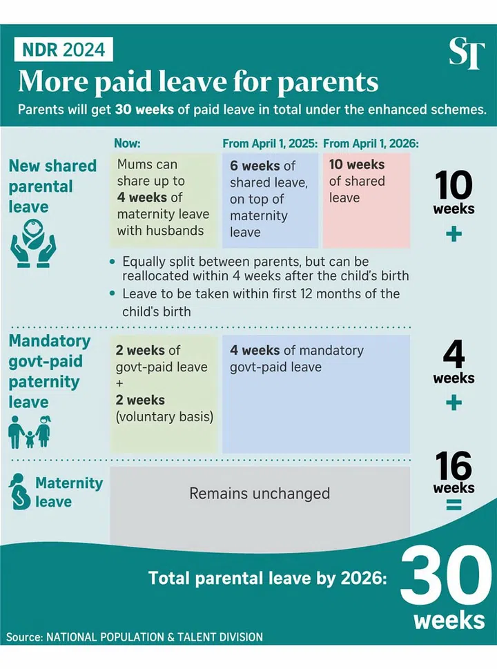 The additional 10 weeks of shared parental leave by 2026 is arguably the most headline-grabbing policy move of this National Day Rally.