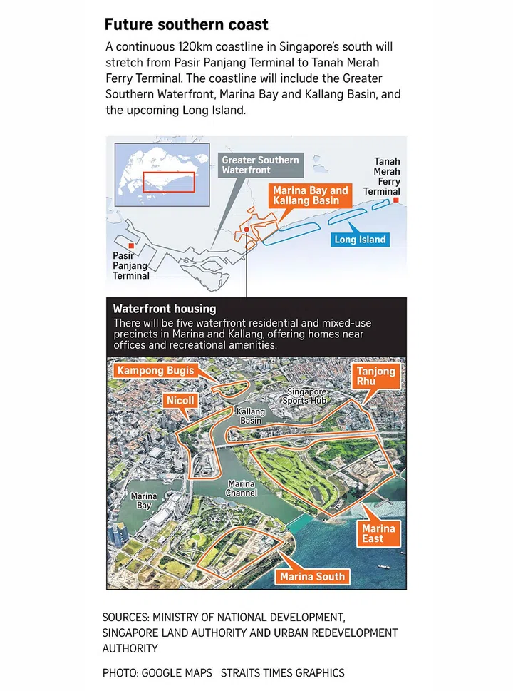 A 120km-long prime waterfront coastline will be built, with current waterfront areas to be stitched together in the future.