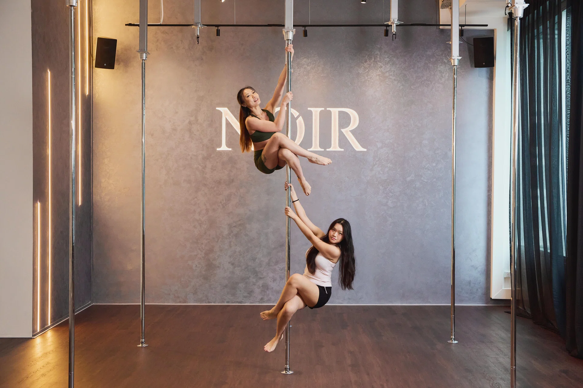 I’ll embarrassingly admit, as a child who could never hang from the monkey bars or climb a playground pole, I was beyond nervous. But avoidance has its limits, and before I knew it, I was stepping into Noir’s brand-new pole studio in the CBD.