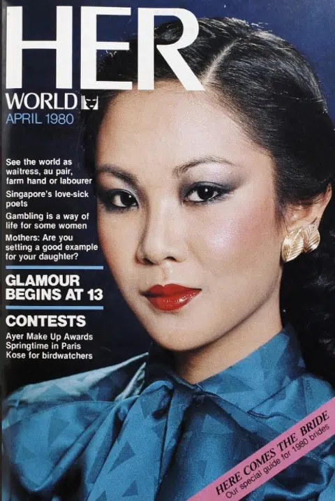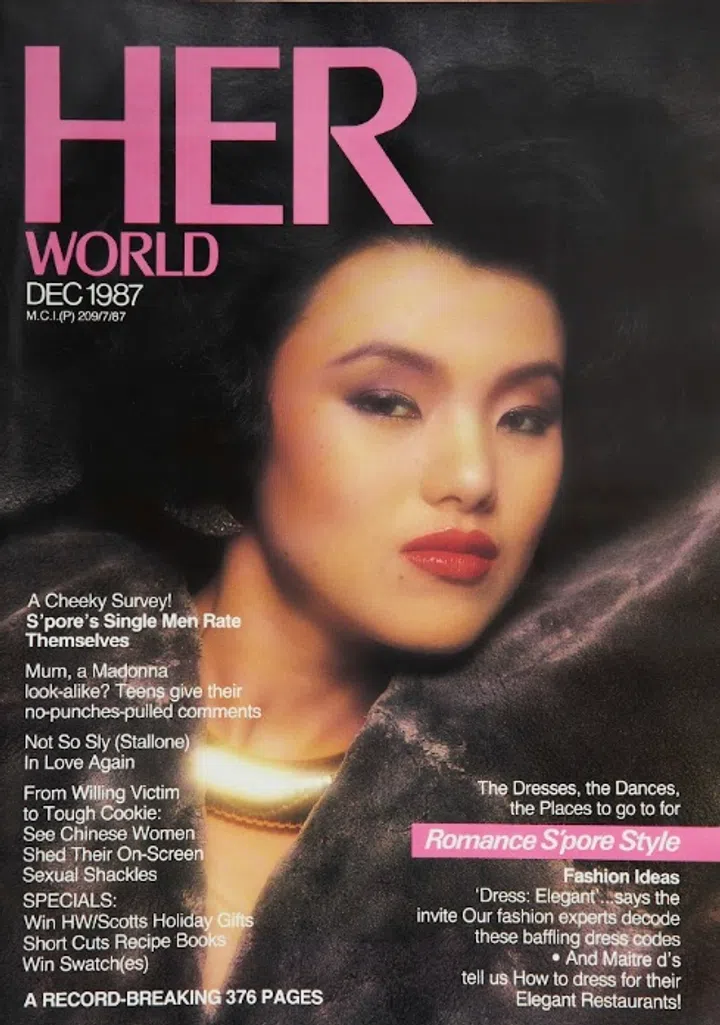 You could see that shift on every cover of Her World at the time. The hair was higher, the blush bolder, the gaze sharper. More than just makeup, these striking looks were a visual uprising and a way for women to claim space at work, in nightlife, and in culture at large. Beauty became both armour and amplifier, mirroring the era’s hunger for agency, visibility, and reinvention.