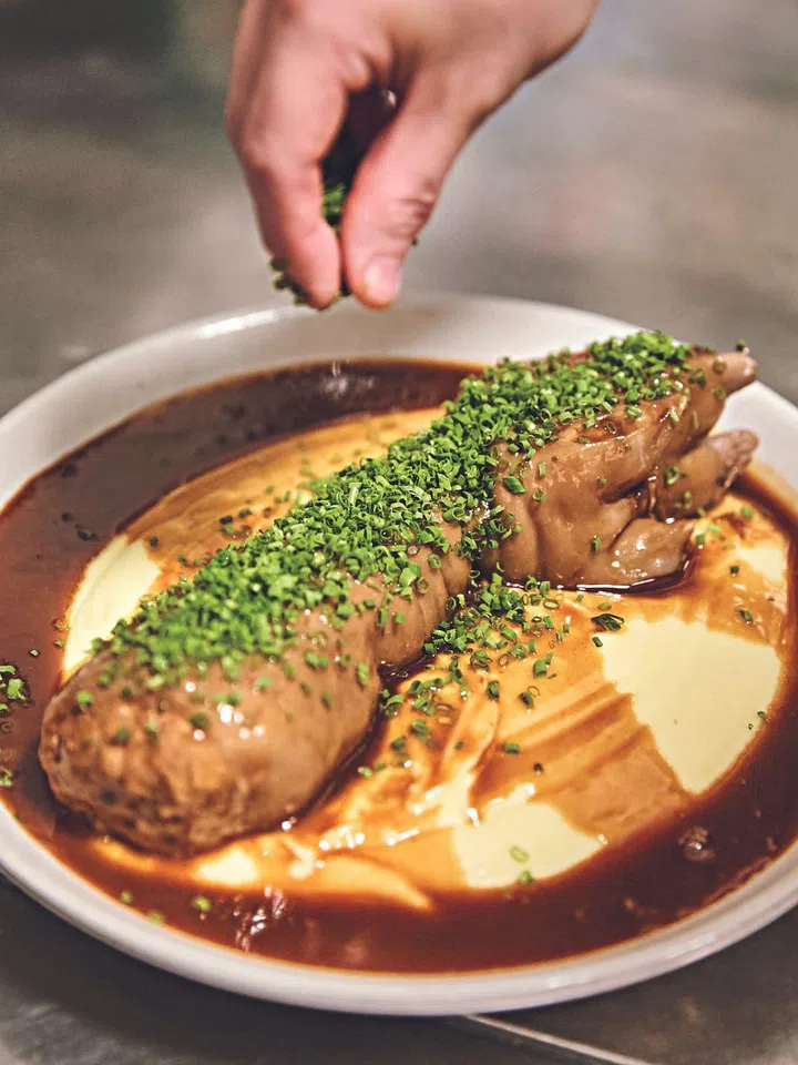 Items like Korean-style fried duck tongues and stuffed pig ’s trotter – a laborious dish that takes two whole days to prepare and cook – are some of her unorthodox creations, which she describes as technique driven and flavour forward.