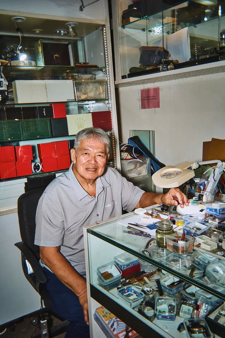 After decades spent running businesses in Hawaii and dabbling in fish farming, Simon now devotes his time to restoring timepieces and curating collectibles at Far East Plaza, where he’s been for 15 years.
