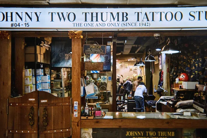For decades, Johnny Two Thumbs has been synonymous with Singapore’s tattoo heritage. Founded in the 1950s and originally located at Bras Basah before finding its home at Far East Plaza in the late ’80s, the studio remains a touchstone for generations of ink enthusiasts.