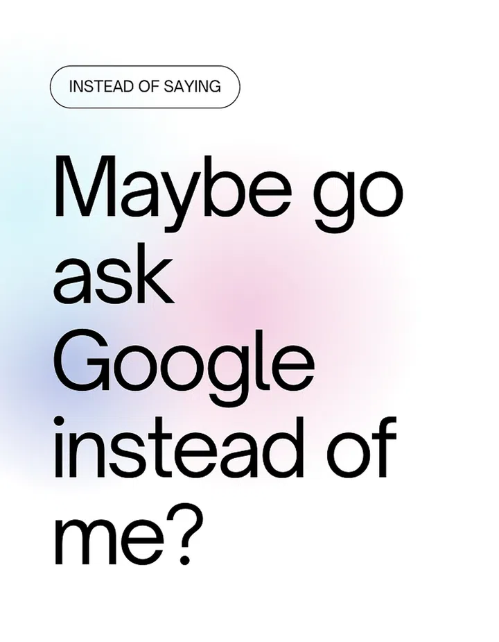 Low recommends exercising discretion here: determine if the asker is truly unsure or just too lazy to find out the answer for themself. "You don't want to appear unhelpful, but at the same time, admitting that you're not the best source of information and that there are online guides offering more comprehensive advice is usually a safe bet," she says.