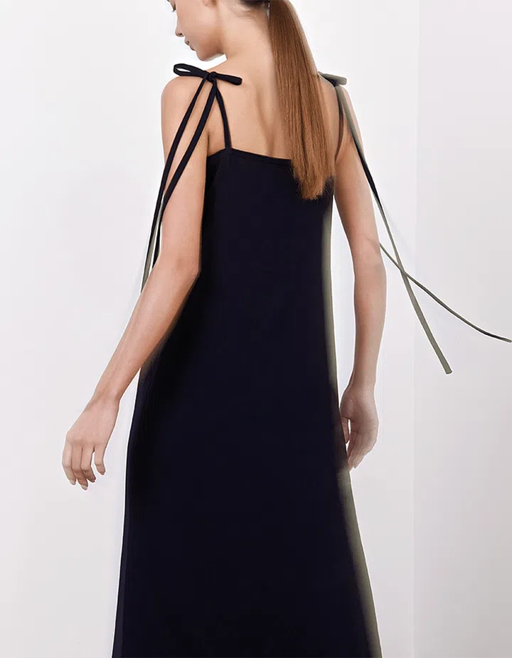 “Made for a dinner date, yet wearable throughout the day, it’s tailored from a mid- weight cotton blend fabric in the shade of a black starless night.”