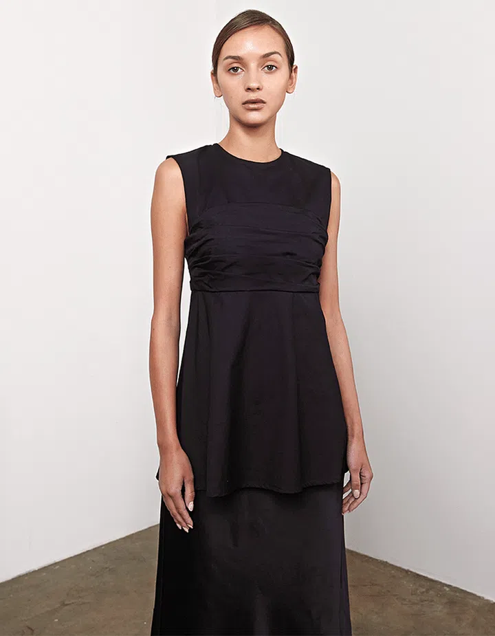 “A transitional piece that takes you from day to night, perfectly cut from fine crepe.”