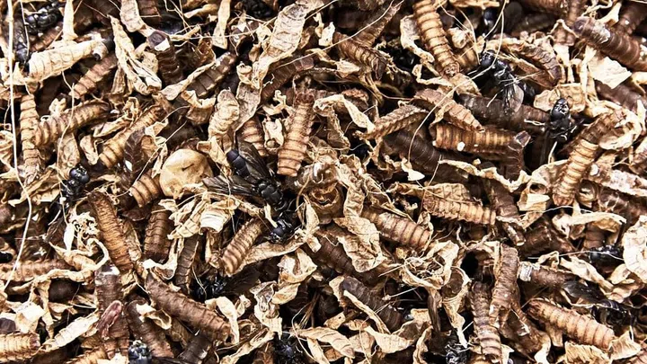 Black soldier flies in adult and larvae stages. Image Credit: Lawrence Teo