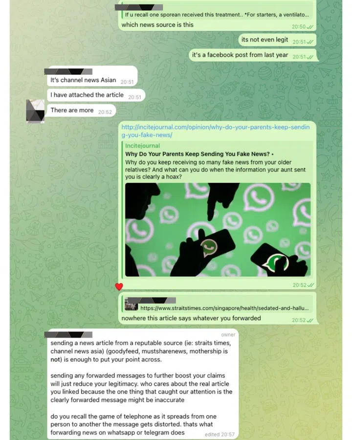 Never question the chain message: You can try arguing over fake news, sending links, or even threatening to POFMA (Protection from Online Falsehoods and Manipulation Act) them, but somehow, it never works.