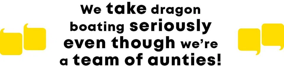 And, we take dragon boating seriously even though we’re a team of aunties! Every weekend, rain or shine, we train at Kallang Water Sports Centre at 7.30am.