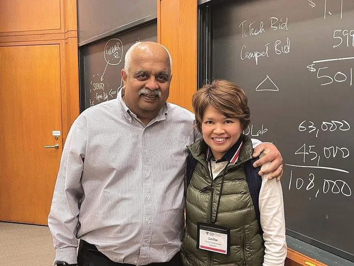 Camellia with Harvard University professor Das Narayandas during an executive training session. Photo provided by Camellia Chan