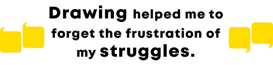 Drawing and playing with art helped me to forget the frustration of my struggles with verbal communication. It also helped me express my emotions.
