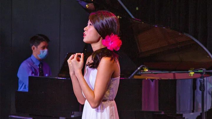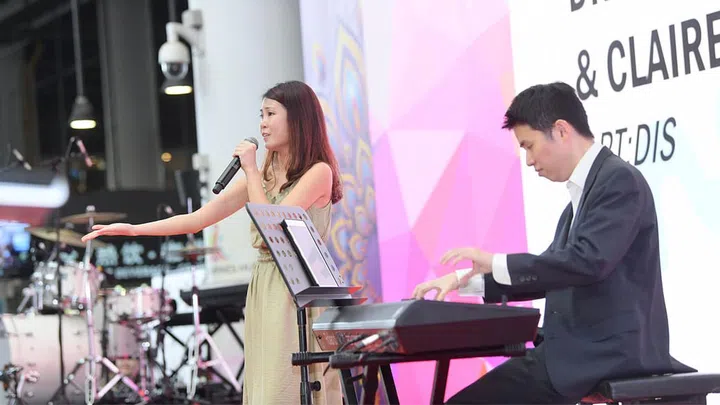 A singing and piano performance by Claire and pianist Dr Azariah Tan at the launch of Shaping Hearts 2022