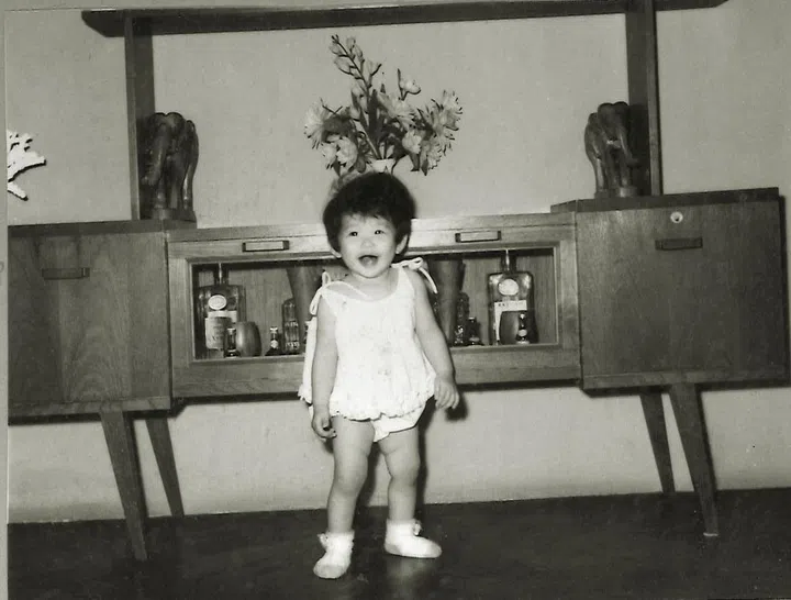 Susan at 10 months old, at her family home in Alor Setar, Kedah.