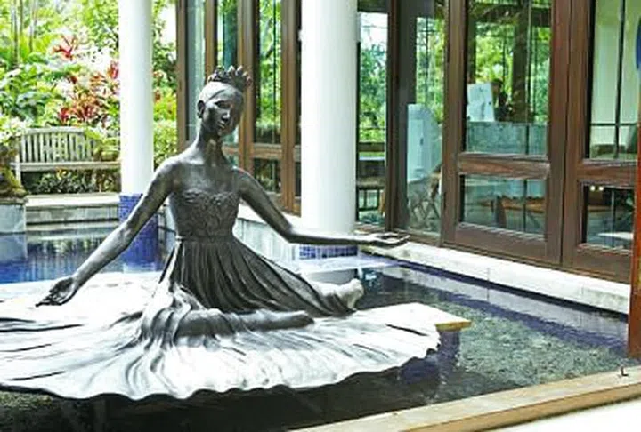 “The artist said she was interested in doing a sculpture of me and she based it on an old photograph taken in my 30s. This greets everyone entering my home. I think it’s very well done – it gives off a very tranquil feeling.”