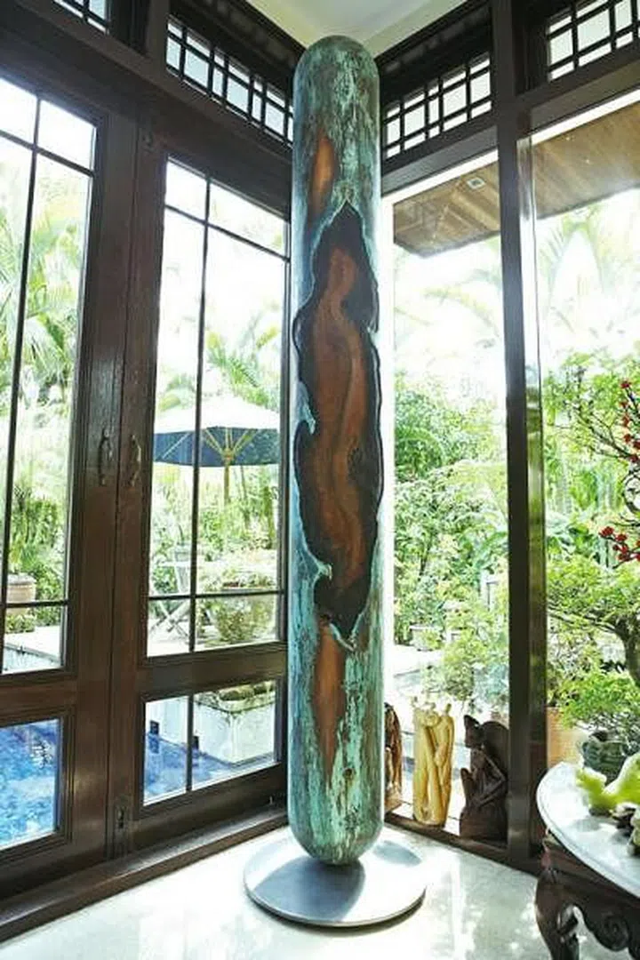 “We commissioned this work and it stands in one corner of my living room. It is a tall piece of wood at over 2m, and it’s partially wrapped in a layer of copper that is oxidised into varying shades of green. I like it because the texture is so interesting, and it brings a bit of nature into the house.”
