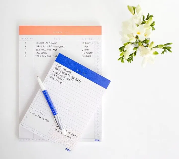 What I most love about this To-do list planner is that is has your usual ticklist points as well as a ‘Priorities’ and ‘For later’ section. Literally what every woman needs. If you could only complete one task today, what would it be? This is number one on your list. This kind of focusing and honing in helps if you’re distracted by unexpected issues that may arise, and we all love that satisfying cross-off when we’ve done with a big task. Psychological studies show that if you complete your biggest task first, you are more likely to be propelled on and complete the rest. Less procrastination equals more productivity.