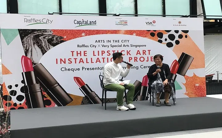 The altruistic artist teamed up with Raffles City to create a lipstick installation. Close to 4,500 lipsticks were collected from collection points set up in Raffles City Shopping Centre and CapitaLand office buildings. The installation was unveiled in a ceremony that took place at Raffles City Shopping Centre, during which CapitaLand Hope Foundation, the philanthropic arm of CapitaLand, donated $100,000 to Very Special Arts (VSA) Singapore that will go towards the refurbishing of two classrooms in VSA Bedok Centre.