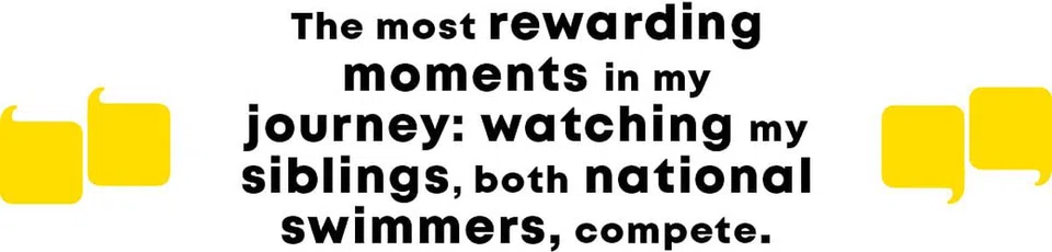 Since then, I have competed in seven Southeast Asian (SEA) Games, four Asian Games, three Commonwealth Games, six World Athletics Championships and two Olympic Games. Still, my most rewarding moments are watching my siblings, both national swimmers, compete.