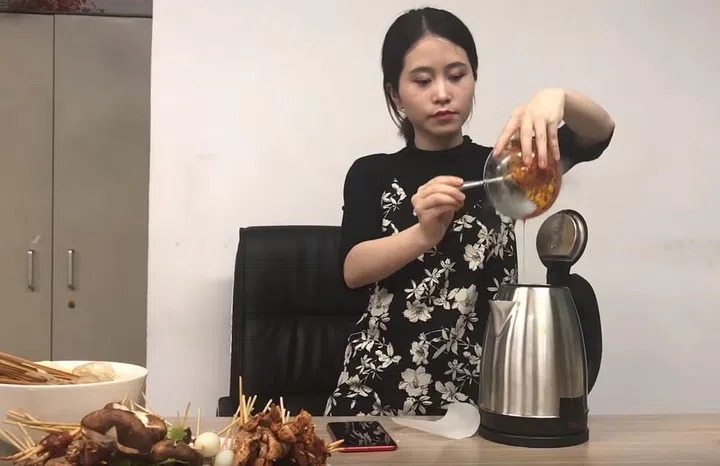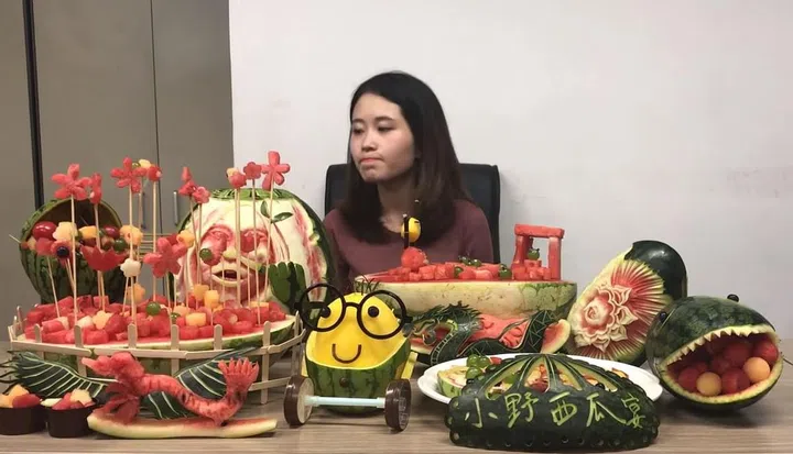The 23-year-old from Chengdu, the capital of Sichuan province in China, catapulted to fame after putting on YouTube videos of her cooking in the office with office equipment. In more recent videos, she has also used food as make-up.