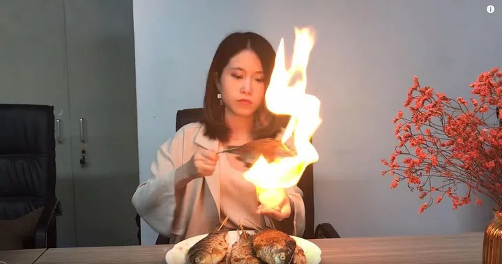 The videos of her preparing food such as spicy hotpot, cooking beef with an iron and flame-grilling fish - with a deadpan expression - have gone viral with millions of views.