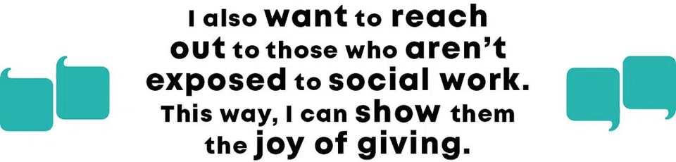 Beyond providing a platform for youths who want to do good, I also want to reach out to those who aren’t exposed to social work. This way, I can show them the joy of giving.