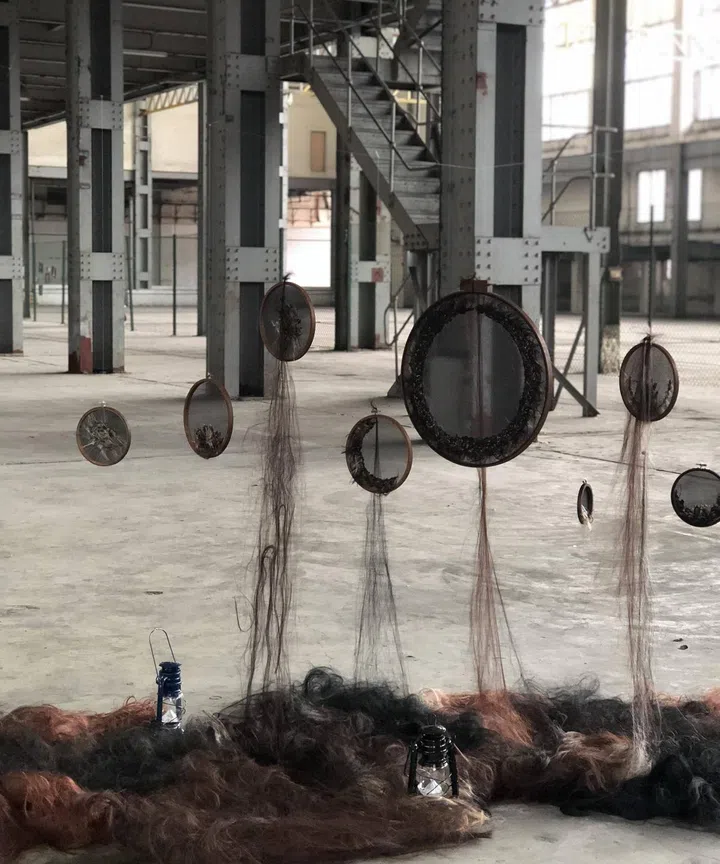 The effect of her art is often dependent on the space around it: “My favourite exhibition was the one I had at Pasir Panjang power station. The defunct power station had no electricity at all, and this added a new dimension to my hair-embroidered hoops when the sun started to set. I think the most important part of this experience was the interaction that people had with the art as they had to go up close to touch and feel the embroidered pieces.”
