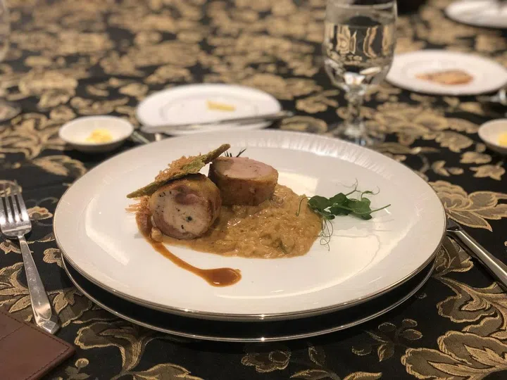 11. A decadent main of Guinea Fowl Truffle Velvet with Pumpkin Savoy Cabbage Ragout, Crisp Potato and Arugula Cracker, had guests nodding with unequivocal approval.