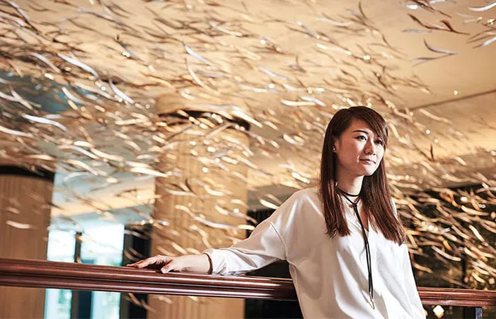 For the Singapore property, she travelled to Nagoya, Japan, to meet sculptor Hirotoshi Sawada, whose nature-inspired works can be found in ritzy digs such as Four Seasons, The Ritz-Carlton and Mandarin Oriental. His Tree Canopy, featuring thousands of fluttering leaves, each arranged to strategically reflect the light, today takes the place of the hotel’s grand chandeliers.