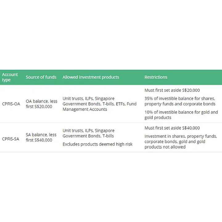 Perhaps the most commonly known investment scheme among Singaporeans, the CPF Investment Scheme (CPFIS) allows you to use your CPF monies to invest in various products, including insurance products, unit trusts, fixed deposits, bonds and shares.