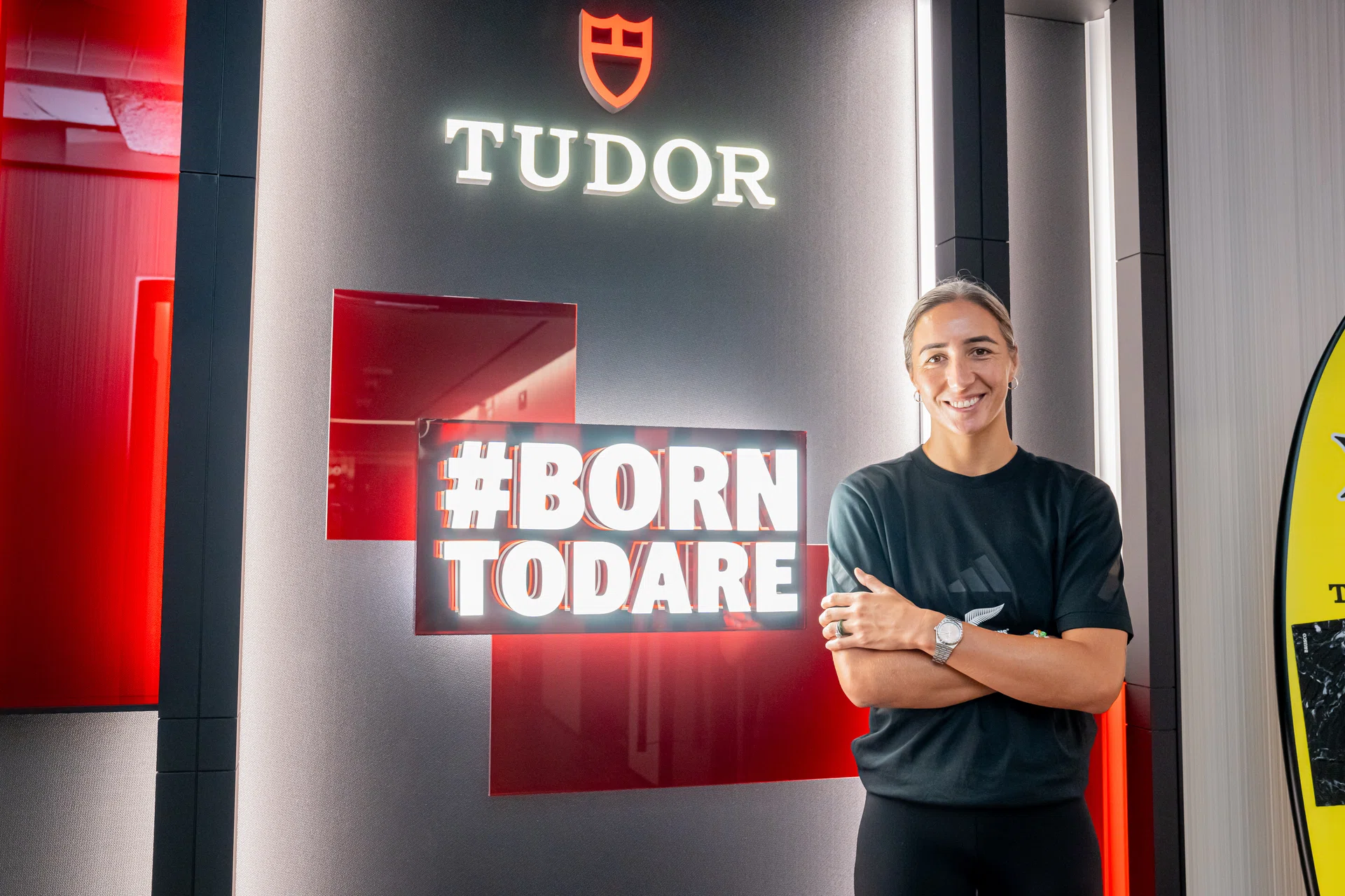 As for her non-negotiables? “Being on time,” she laughs. “I hate being late.” Her watch of choice? The Tudor Black Bay Ceramic — tough, stylish, and understated. Much like Sarah herself.