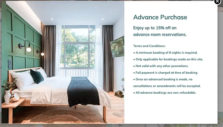 Also, this is probably a good time to point out that bookings are non-refundable and non-amendable! You need to click on the “Terms and Conditions” text (in the image 4 photos ago) and the below pops up.