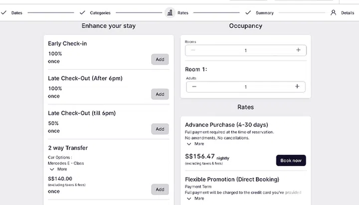 The above screenshot is before I checked early check-in and late check-out. I guess the 100% is meant to indicate an increase in prices, although it wasn’t very clear.