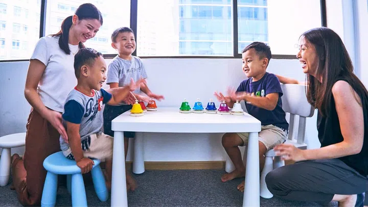 Every so often, the quiet hallways of an office building in Tanjong Pagar become abuzz with the chatter of young children eagerly making their way to their music lessons. But as one observes these classes happening in situ, small clues reveal that this is not a typical music school.