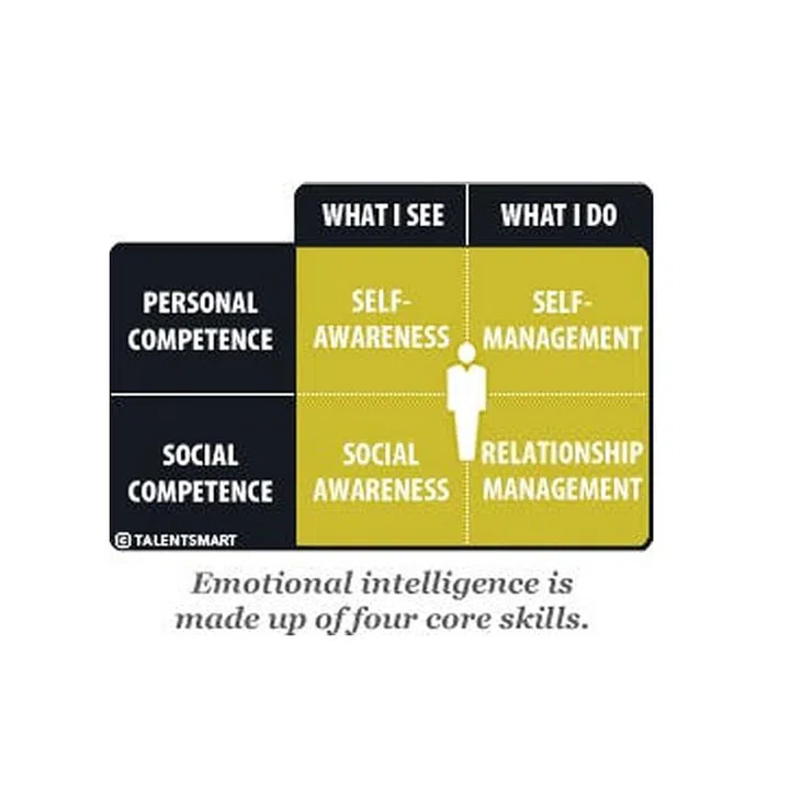 Self-management and self-awareness are classified under personal competence whereas social awareness and relationship management are classified under social competence.