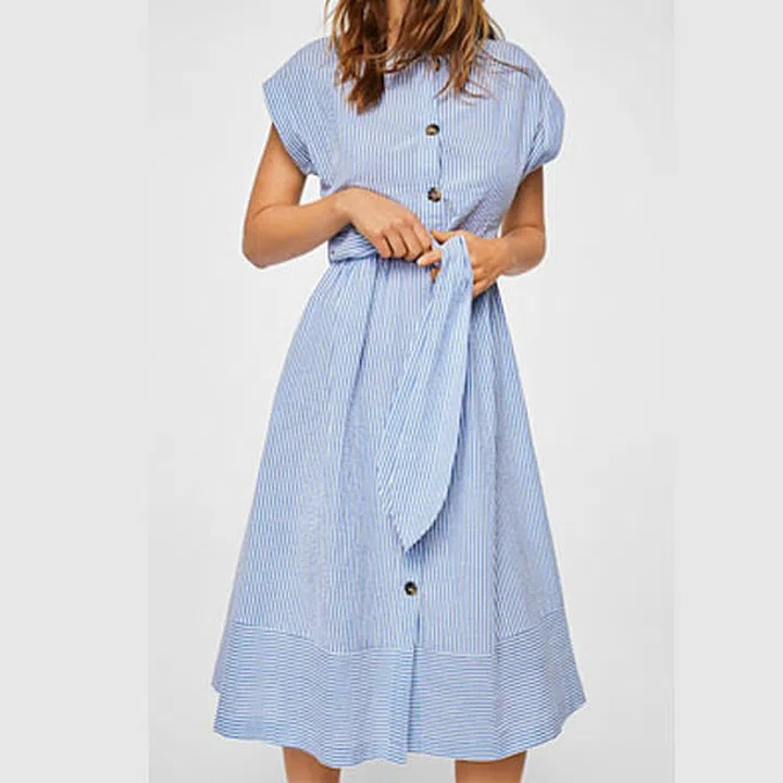 The cinched-in waist line and the subtle variation of stripes lends some uniqueness to an otherwise versatile dress. This will go nicely with leather sandals and a pair of colourful sunnies for your off days.