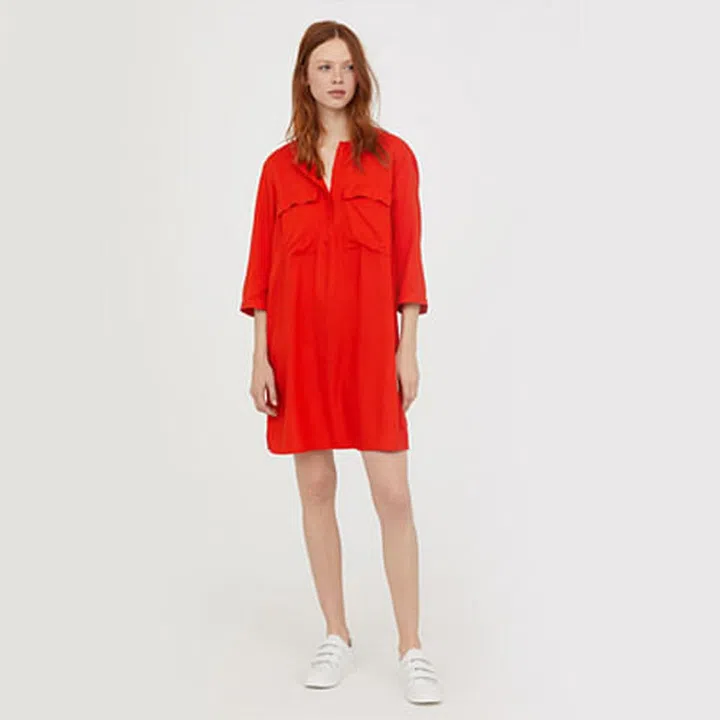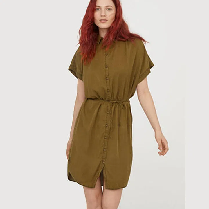 This safari green dress adds a utilitarian vibe to your #ootd. Plus, the lyocell fabric promises to keep you well ventilated no matter what the weatherman says.