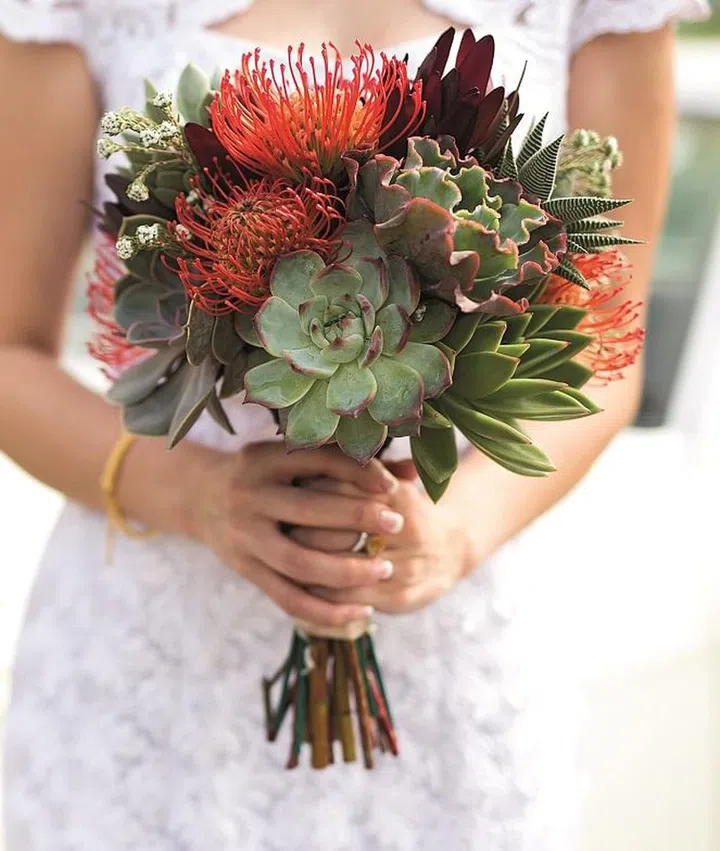 Wan Ting's bouquet comprised succulents, proteas and fillers.