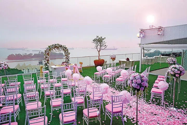 The hotel's Pool Deck offers breathtaking views of the Singapore River as well as a tranquil garden setting for an intimate wedding ceremony for 50.