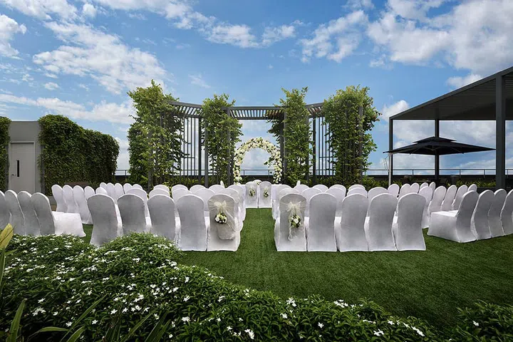 If you're looking for a cosy, alfresco setting, the Sky Lounge at Genting Hotel Jurong is ideal for your solemnisation. Covered in greenery and beautiful foliage, this tranquail space offers panoramic views of the surrounding area. It also looks spectacular at night when it is lit up in jewel hues.