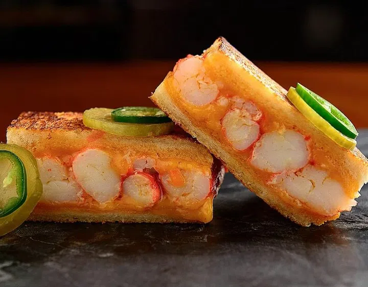 The menu includes sandwiches, salads, seafood, and meats grilled over bincho charcoal on a traditional robata grill. Signatures include the Waygu Cheeseburger ($26 for the regular size), which comes with a juicy beef patty, tomato jam, gruyere cheese, pickled jalapenos, and a sunny side-up sandwiched between brioche buns. Also try the King Crab Melt ($25) – bite-sized toasties filled with Alaskan king crab meat, pimento cheese, fresh jalapenos and topped with bread and butter pickles, a sweeter version of regular pickles as they’re marinated with sugar.