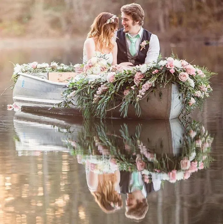 Sometimes, a little effort is needed for that perfect shot. This boat for two was dressed up with lush lovely blooms to create a fairy tale vibe.