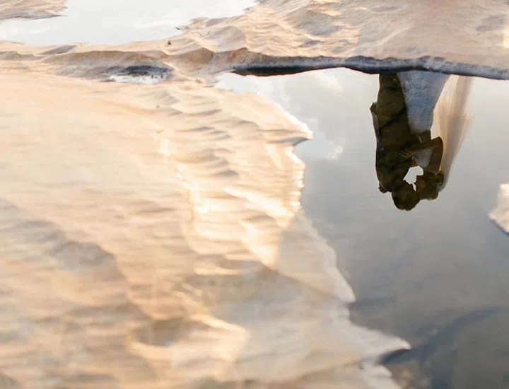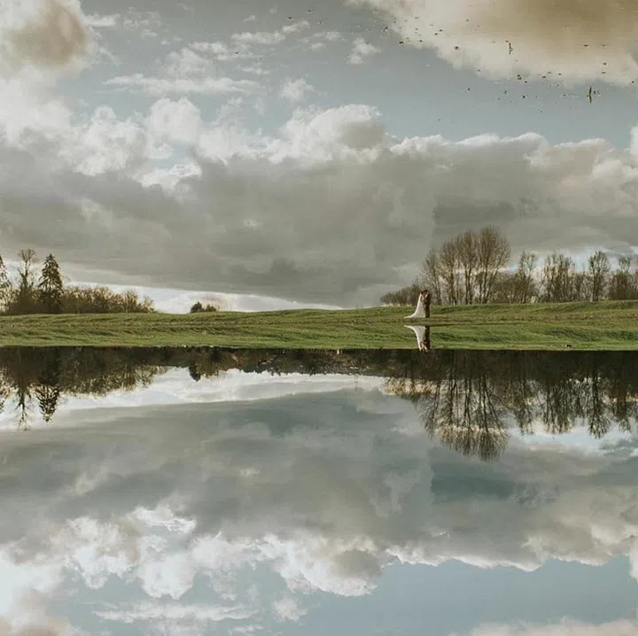 The beauty of rolling clouds and picturesque landscape was captured in the shimmering waters in this surreal shot.