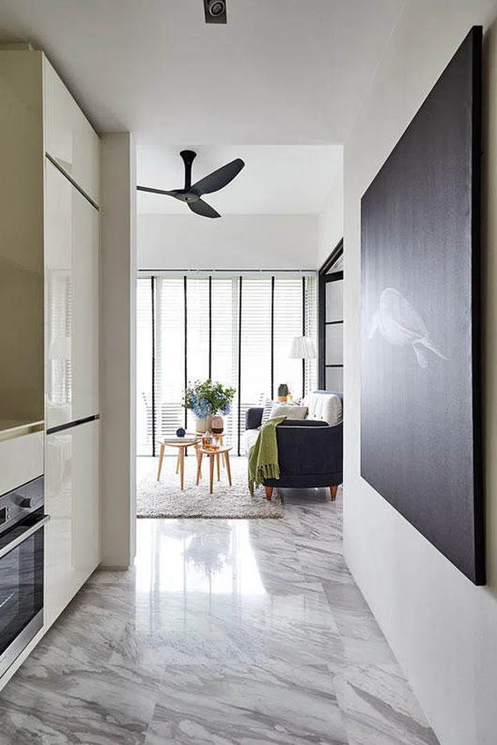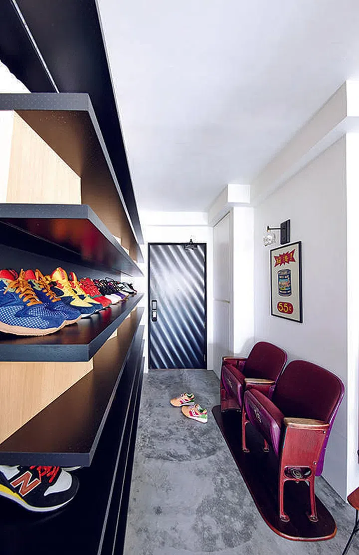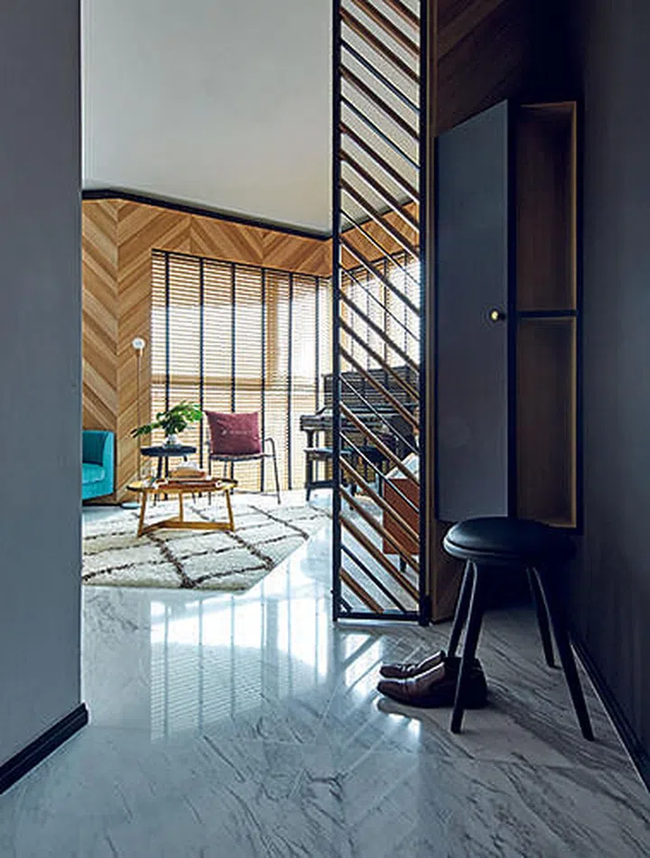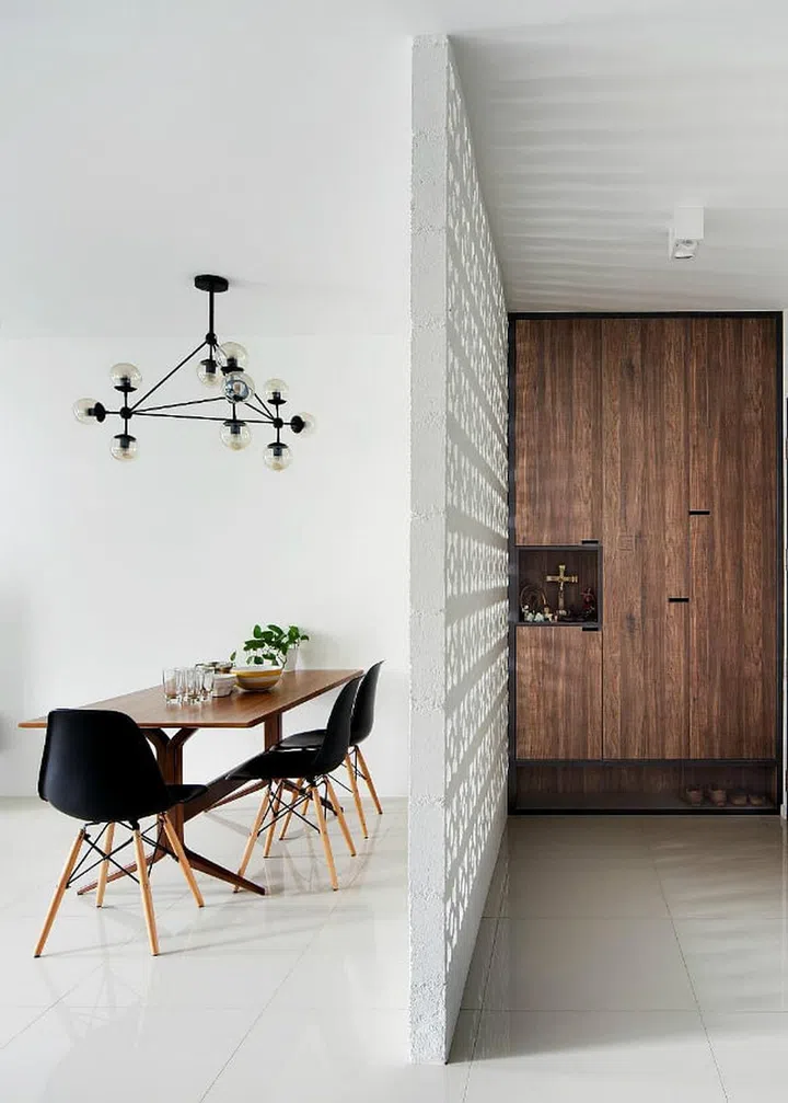 Old-school ventilation blocks add a vintage touch to this modern apartment.
