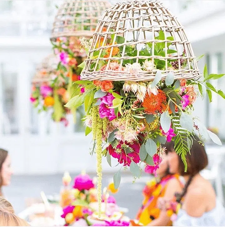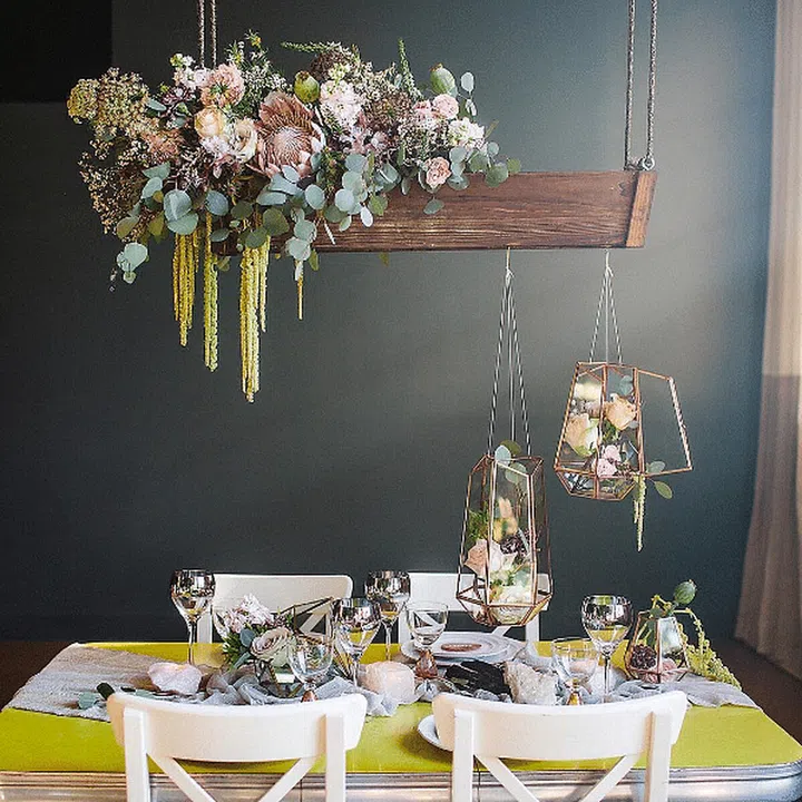 From bird cages to geometric installations, here are suspended centrepieces we love for whimsical touches!