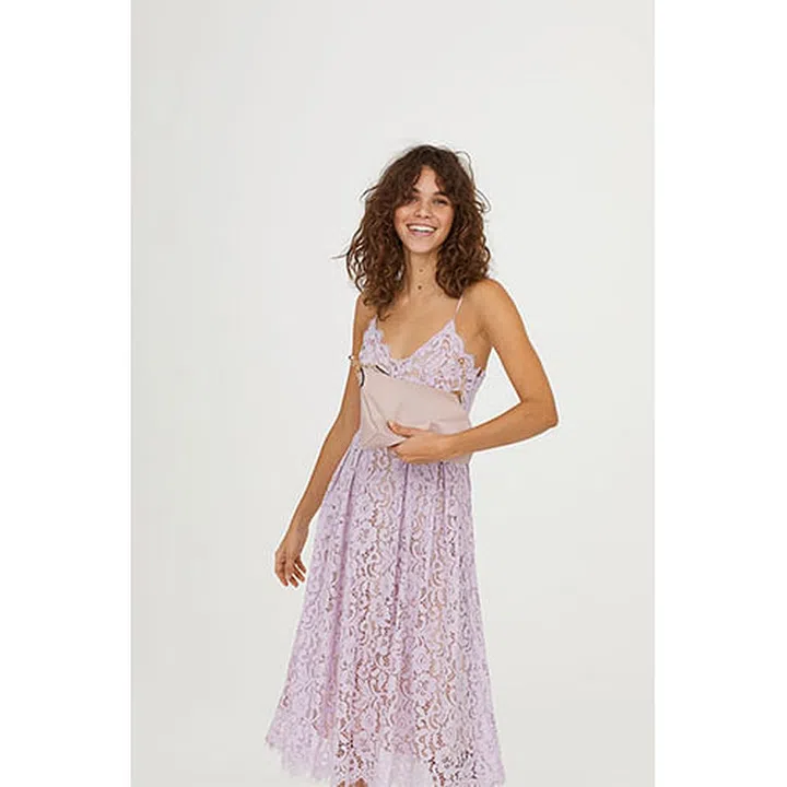 Lace pulls double duty here, as it keeps you well-ventilated and pumps up the sex appeal. For a less vampy dress, go for a sweet colour option, such as this shade of lavender.