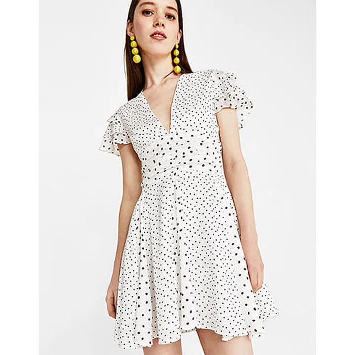 Play it sweet with a retro-inspired polka dotted mini dress. Not only is it cut away from the body for more comfort and ease, it's also super versatile.